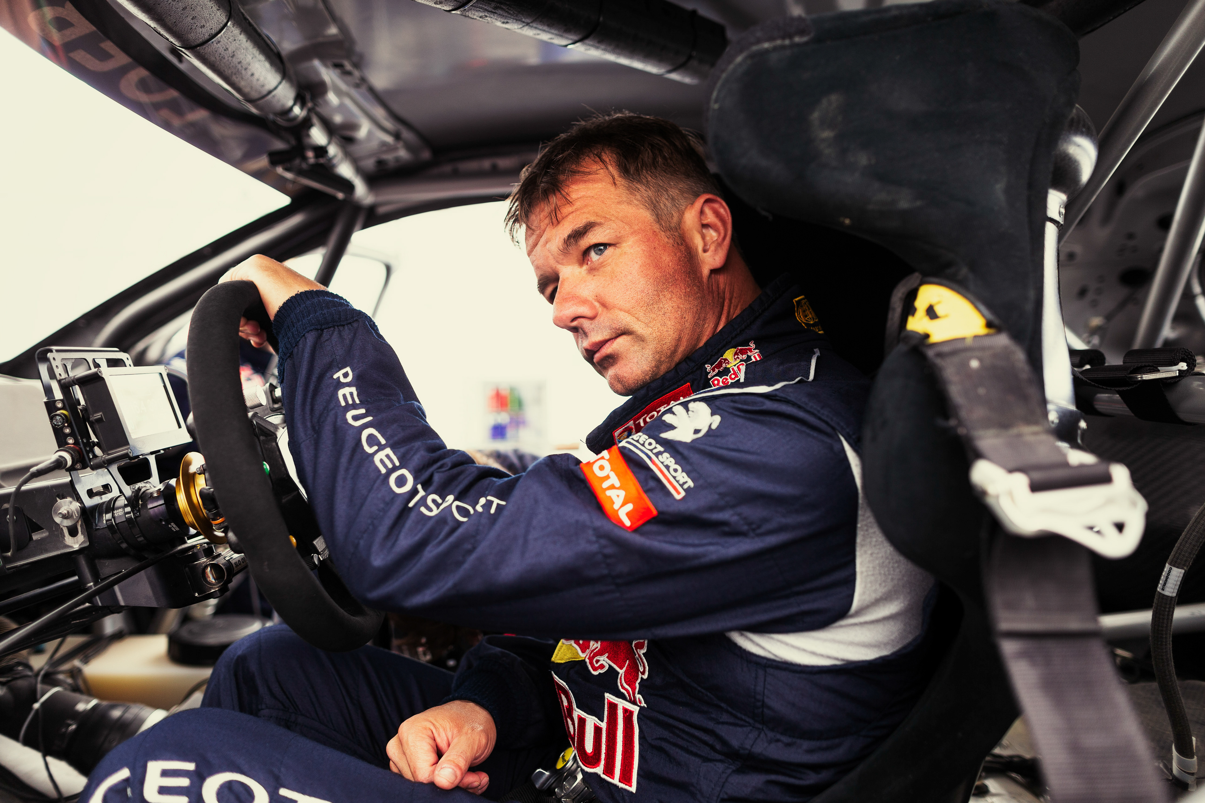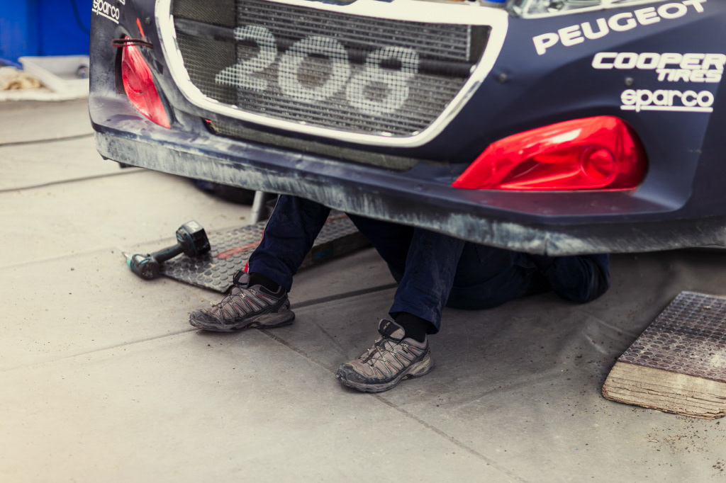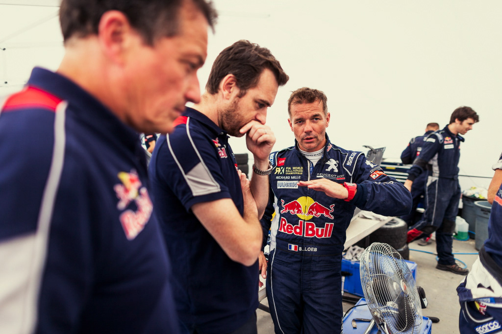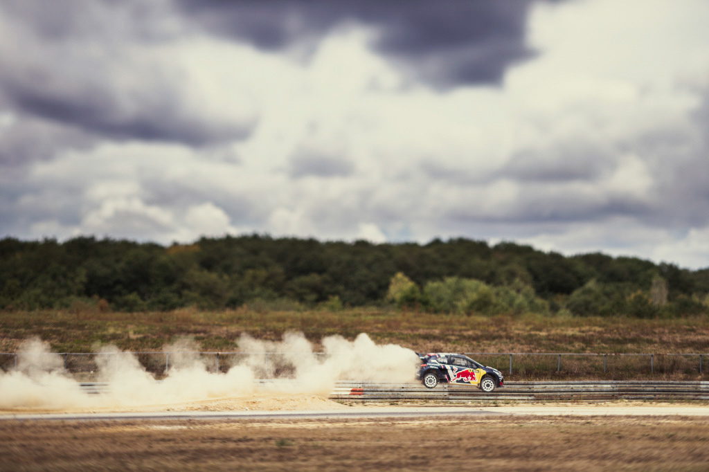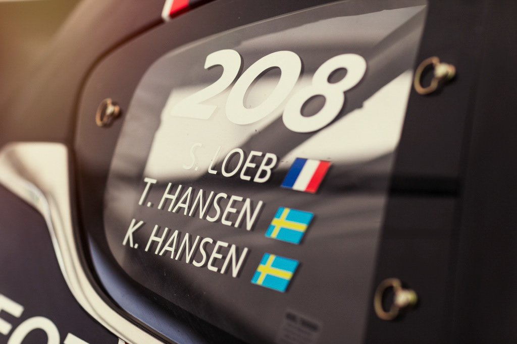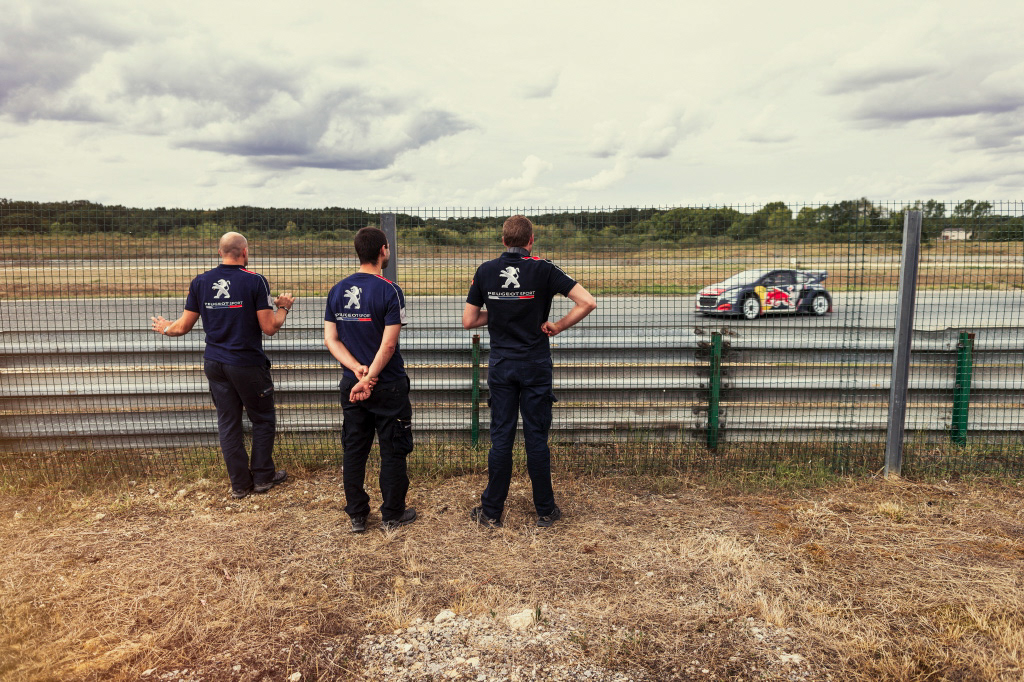 Illustrations des essais de l'équipe à Châteauroux, France, pour Peugeot Sport. Avec la légende du WRC Sébastien Loeb et les frères Hansen.